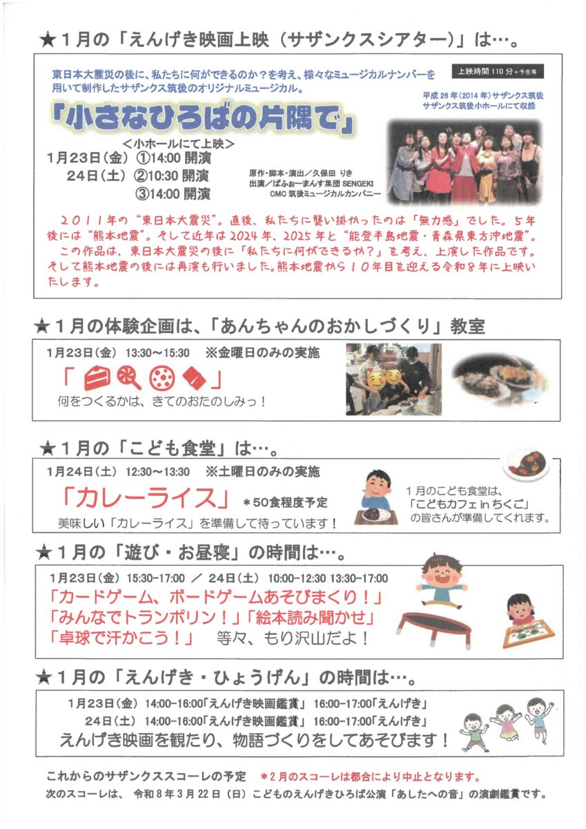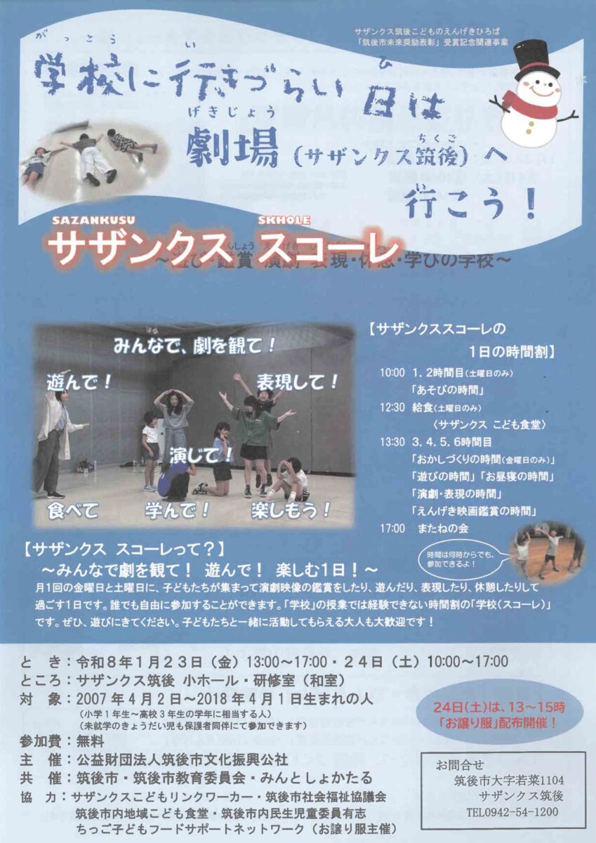 学校に行きづらい日は劇場(サザンクス筑後)へ行こう!