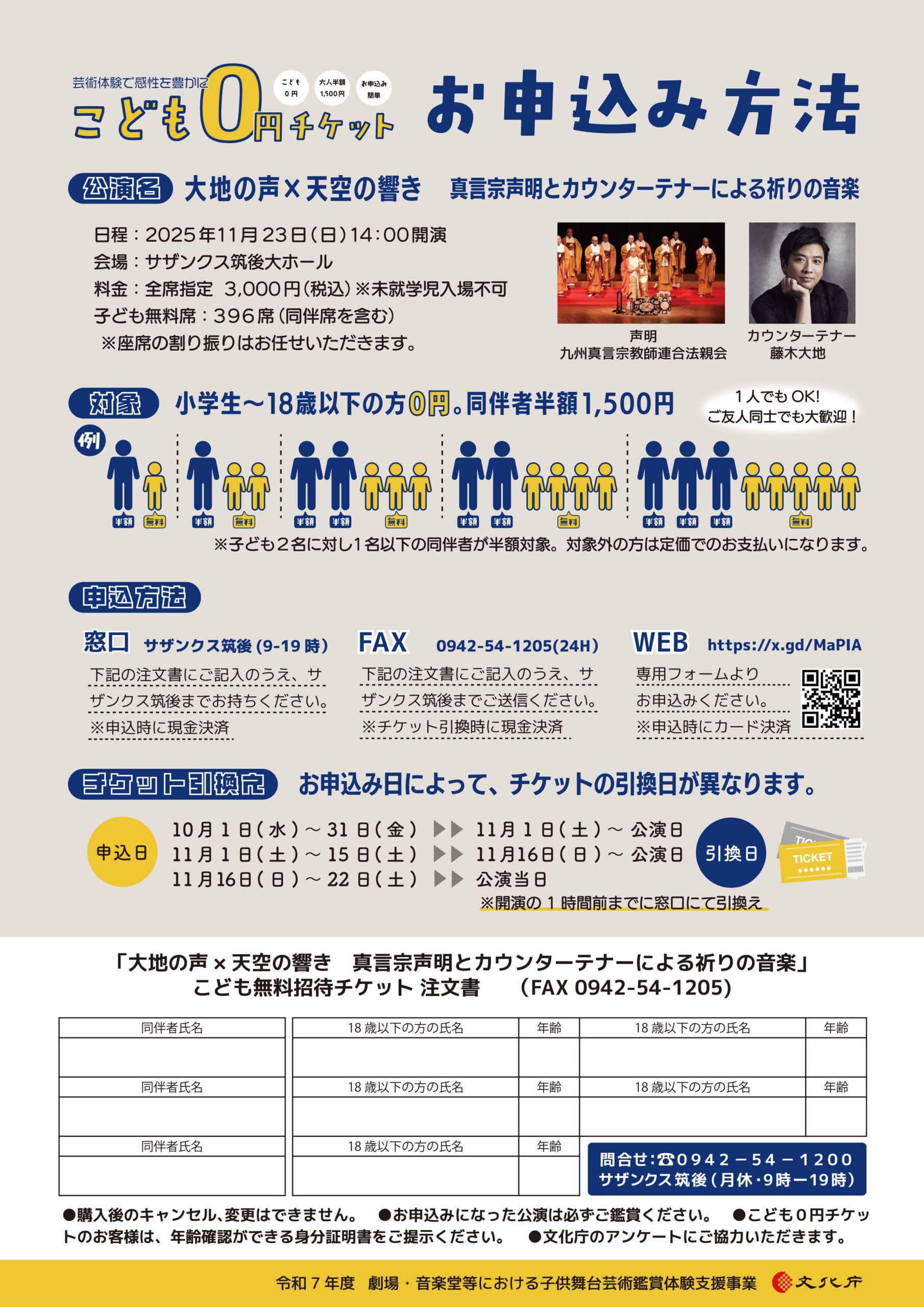 大地の声×天空の響き こども0円チケット(18歳以下無料招待)